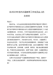在主题教育党组理论中心组集中学习研讨上的主持讲话稿(2篇)篇1: 同志们: 按照XJP新时代中国特色社会主义思想主题教育安排部署,今天我们召开*党组理论中心组第2次集中学习研讨,本次集中学习研讨的主题是:学深悟透做实XJP新时代中国特色社会主义思想,把握好其世界观和方法论,坚持好、运用好贯穿其中的立场观点方法,从而深入领会这一重要思想的道理学理哲理,做到知其言更知其义、知其然更知其所以然,切实用以武装头脑、指导实践、推动工作。 参加今天会议的有*党组成员;其他*级以上领导干部;各部门主要负责同志。 今天会议共有三项议程,一是集中学习XJP总书记重要论述著作;二是班子成员及各部门主要负责...