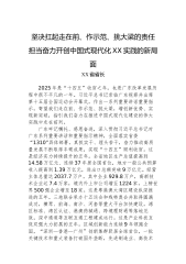 坚决扛起走在前、作示范、挑大梁的责任担当奋力开创中国式现代化XX实践的新局面