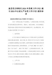 基层党支部制定2024年党建工作计划3篇与2024年全面从严治党工作计划5篇供参考