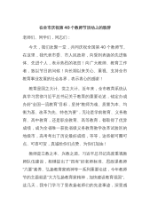在2024年第40个教师节座谈会上的讲话稿【7篇】与2024年学校党委党支部党建工作总结及2025年党建工作计划【六篇】汇编供参考2024年教师节表彰大会上的讲话大家上午好!在第40个教师节来临之际,各位领导心怀发展,情系教育,于这里隆重集会,我作为一名普普通通的一线教师,能在现场感受领导的关怀,聆听各位领导的热切瞩望,社会各界对教师的尊重,已经十分荣幸,又能作为教师代表在庆祝大会上发言,表达我们的心声和对美好未来的憧憬,心情倍感激动,请允许我代表全体教师向多年来关心支持西丰教育发展的、县领导,向社会各界致以崇高的敬意!向为我们提供发展平台的教育领导表示最诚挚的感谢!向所有的同行们道一声:节日...