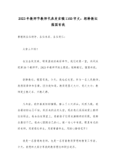 2023年庆祝教师节校长发言稿与庆祝第39个教师节教师代表发言稿:躬耕教坛强国有我(两篇文)