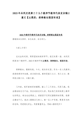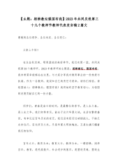 2023年共同庆祝第39个教师节教师代表发言稿——躬耕教坛强国有我与庆祝教师节校长讲话稿发言稿【两篇】