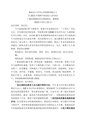 喜迎党的二十大培根铸魂育新人在临汾一中庆祝第38个教师节暨新学年开学典礼大会上的讲话山西省临汾第一中学校校长张杨管(2022年9月9日)尊敬的各位老师,亲爱的同学们:大家上午好!云天收夏色,木叶动秋声。在这个美好的金秋时节,在我们以实际行动迎接党的二十大胜利召开之际,我校在此隆重举行庆祝第38个教师节暨新学年开学典礼。我谨代表学校党政一班人,向辛勤耕耘在教育教学岗位上的全体教职工致以节日的问候和真挚的祝福,向退休老领导、老教师致以崇高的敬意和衷心的祝愿,向受到表彰的优秀教职工和同学表示热烈的祝贺,向加盟我校教师队伍的新老师以及刚刚跨入一中校门的高一新同学表示最诚挚的欢迎:临汾一中大家庭欢迎你们...