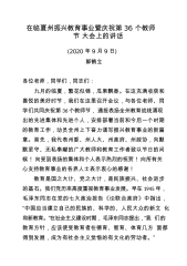 砥砺奋斗韧性担当时代大任在2021年秋季开学典礼暨教师节庆祝大会上的致辞无锡市堰桥初级中学校长汪定用(2021年9月10日)尊敬的各位嘉宾、各位家长,敬爱的老师,亲爱的同学们:今天我们以开学典礼的名义,一起揭开新学年的幕幔,开启学校办学史上第119年的征程!开学这几天,全校1417名同学呈现了积极向上的精神面貌,为学校教育增添了勃勃生机,学校150名教职员工呈现了勇挑重担,奋发有为的工作风貌,尤其是我们的老教师,虽然临近退休,但是她们依然满工作量负荷,把重担一直挑到退休,把责任也一直坚守到退休,她们是堰桥初中的精神旗帜!今天是第37个教师节,我提议全体同学由衷的对老师说一声“亲爱的老师,您辛苦...