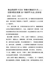 做出类拔萃“大先生” 育德才兼备好大夫——在医学院庆祝第38个教师节大会上的讲话