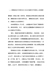 ——西南政法大学校长在2018级新生开学典礼上的致辞尊敬的《西政之歌》词作者、西南政法学院老院长高绍先教授,尊敬的家长代表毕诗军先生,尊敬的各位老师、各位家长,亲爱的2018级同学们:在连续高温62天之后,山城重庆终于迎来了清爽的秋风、清凉的秋雨。今天,我们在这里隆重举行西南政法大学2018级新生开学典礼。首先,我谨代表校党委书记樊伟同志,代表学校,向来自全国各地的2018级博士研究生、硕士研究生和本科生同学,表示热烈祝贺!向冒着酷暑远道而来的各位家长,致以诚挚问候!感谢各位家长对西南政法大学的肯定和信任!并借此机会,特别向各位老师表达崇高敬意!衷心祝愿全校教职员工以及军训师全体教官,教师节快...