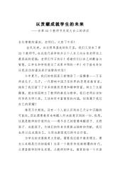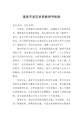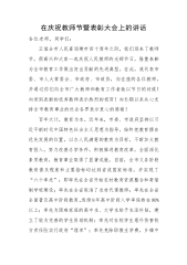 在庆祝2020年教师节暨推动教育高质量发展会议上的讲话各位老师、同志们:金秋九月,硕果飘香。今天,我们在这里隆重集会,热烈庆祝第36个教师节,在此我代表县四大班子,向参加会议的教师代表并通过你们向全县广大教育工作者致以节日的问候!向受到表彰的优秀教师、新XX一中建设先进单位和先进个人表示热烈的祝贺!会前,我们共同参观了新XX一中,亲眼目睹了先进的教学设施、整体环境,亲身感受到XX教育发生的巨大变化。会上,XX同志宣读了《关于表彰优秀教师的决定》,XX同志宣读了《关于表扬在新XX一中建设中做出突出贡献的先进单位、先进个人的通报》,共同为省市县优秀教师代表以及新XX一中建设先进单位、先进个人代表进...