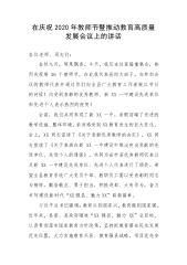 庆祝2020年教师节暨推动教育高质量发展会议上的讲话