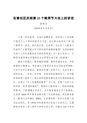 方裕谦同志在全区教育大会暨庆祝第35个教师节会议上的讲话六枝特区党委副书记、政府区长方裕谦(2019年9月9日根据录音整理)同志们:今天,我们在这里召开全区教育大会暨庆祝第35个教师节会议,主要目的是:深学笃用习近平总书记关于教育的重要论述,全面贯彻落实全国、全省、全市教育大会精神,表扬一批为全区教育事业作出杰出贡献的先进集体和优秀个人,分析我区教育工作面临的新形势新任务,安排部署当前和今后一个时期的教育工作,以推动教育的现代化、特色化发展为目标,为夺取脱贫攻坚全面胜利、夯实同步小康决定性基础、推动高质量发展提供坚强的人才支撑和智力保证。在此,首先向广大教师们说一声:你们辛苦了!刚才,潘静同志...