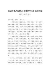 在庆祝2020年教师节暨推动教育高质量发展会议上的讲话各位老师、同志们:金秋九月,硕果飘香。今天,我们在这里隆重集会,热烈庆祝第36个教师节,在此我代表县四大班子,向参加会议的教师代表并通过你们向全县广大教育工作者致以节日的问候!向受到表彰的优秀教师、新XX一中建设先进单位和先进个人表示热烈的祝贺!会前,我们共同参观了新XX一中,亲眼目睹了先进的教学设施、整体环境,亲身感受到XX教育发生的巨大变化。会上,XX同志宣读了《关于表彰优秀教师的决定》,XX同志宣读了《关于表扬在新XX一中建设中做出突出贡献的先进单位、先进个人的通报》,共同为省市县优秀教师代表以及新XX一中建设先进单位、先进个人代表进...