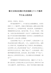 杨长亚:在全市庆祝2019年教师节表彰大会上的讲话20191023演讲人杨长亚陕西省铜川市委书记铜川军分区党委第一书记发文时间2019年9月6日敬的各位老师同志们:在举国上下喜迎新中国成立70周年的日子里在第35个教师节即将到来之际我们隆重召开这次庆祝表彰大会就是要唱响教育优先发展之旋律弘扬尊师重教之风气激励全市教师和教育工作者不忘初心、坚守使命、奋发作为。刚才宣读了今年受到全国、全省表彰的我市教育系统先进集体和先进个人名单命名表彰了我市新一批学科带头人、教学能手3位教师代表作了很好的发言让我们感受到了教育工作者尤其是一线教师的崇高情怀和优秀品质。可以说铜川教育事业的每一个进步、每一个成绩都凝...