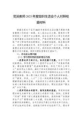 党员教师2025年度组织生活会个人对照检查材料(精品)