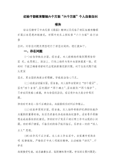 纪检干部教育整顿六个方面“六个方面”个人自查自纠报告结合近期学习中央纪委《通报》精神以及纪检干部队伍教育整顿开展以来思想淬炼情况,对照中央及上级纪委“六个方面”进行自查自纠,对存在问题及原因进行了深层次剖析,现汇报如下。一、存在问题(一)在信仰缺失方面。经自查,本人能够始终做到理想信仰坚定,在思想上、政治上、行动上始终与党中央保持高度一致。但有时不能正确看待新时代出现的新情况新问题,对于这些问题不能从更深层次、更全面的角度分析理解,导致政治信心不足。(二)在政治动摇方面。经自查,本人始终自觉树立“四个意识”,坚定"四个自信",坚定拥护“两个确立",坚决做到“两个维护”,不存在同党离心离德,参与...