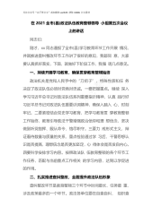 关注公众号“尖子班公文”或加微信wx3hhh获取1000G公文素材在2021全市(县)政法队伍教育整顿领导小组第五次会议上的讲话同志们:刚才,xx同志通报了全市(县)学习教育环节工作开展情况,并就推进查纠整改环节工作讲了很好的意见,我都同意,大家要认真抓好落实,下面,就做好下阶段工作,我强调几点意见。一、持续开展学习教育,确保贯穿教育整顿始终政法机关是党和人民手中的“刀把子”,特殊性质和任务决定了政法队伍必须对党绝对忠诚。一要把握重点。继续深入学习习近平总书记对政法队伍系列重要指示精神,认真践行好习近平总书记对政法队伍重要训词精神,确保入脑入心、时刻牢记。二要紧密结合党史学习教育,把学习教育贯...