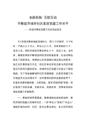 街道办事处党建工作交流会发言:创新机制互联互动不断提升城市社区基层党建工作水平范文