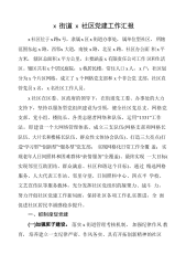 x街道x社区党建工作汇报x社区位于x路x号,隶属x区x街道办事处,属单位型社区。所辖范围东起x路,西邻x大道,南接x路,北至x路。社区办公面积x平方米,辖区总面积x平方公里,主要涵盖x有限责任公司工作区和生活区。辖区共有x个居民庭院,x栋居民楼,常住人口x人,x户;社区划分为x个片区网格,成立了x个网格党支部和x个非公党支部。社区直管党员x名,x名社区工作人员。x社区在区委、区政府的领导下,在街道党工委、办事处的大力支持下,坚持以服务型党组织建设为引领,健全社区党总支、网格党支部、党小组、楼院长、各类志愿者网络和队伍,运用“1331”工作法,即建设一个大网络管理体系、成立三支队伍(网格支部和网...