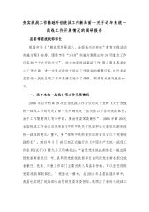 夯实统战工作基础开创统战工作新局面--关于近年来统一战线工作开展情况的调研报告县委常委统战部部长根据市委《“解放思想再深入、全面振兴新突破”教育实践活动实施方案》安排,围绕市委“1+10”实施方案提出的38项重点工作任务和“十大行动计划”,结合加强统战基础工作,服从服务县委中心工作大局,进一步适应新时代统战工作面临的重要任务,对近年来县委统一战线各项工作开展情况进行了调研。现将有关情况报告如下:一、近年来统一战线各项工作开展情况2000年召开的第19次全国统战工作会议制定下发的《关于加强统一战线工作的决定》第一次明确规定“省及省以下各级统战部长,由于工作需要而又有条件的,要由党委常委兼任”。2...