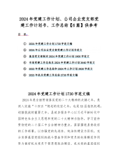 基层党支部制定2024年党建工作计划3篇与2023年党支部工作总结及2024年工作计划(10篇)供参考
