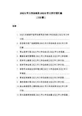 2021年工作总结及2022年工作计划汇编(33篇)目录1.2021年度绥宁县司法局司法行政工作总结及2022年工作计划..........................................................................2.安龙县文体广电旅游局2021年工作总结及2022年工作打算..........................................................................3.常山县审计局2021年工作总结及2022年工作思路........4.繁昌区城市管理局2021年工作总结及2022年工...