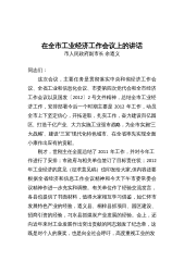 在全市工业经济工作会议上的讲话市人民政府副市长余遵义同志们:这次会议,主要任务是贯彻落实中央和省经济工作会议、全省工业和信息化会议、市委第四次党代会和全市经济工作会议以及国发〔2012〕2号文件精神,总结全市工业经济工作,安排部署今后一个时期主要是2012年工作,动员全市上下坚定信心,开拓进取,扎实工作,奋力建设百亿园区、打造千亿产业、大力实施工业强市战略,为全市实施“三大战略”、建设“三宜”现代化特色城市、在全省率先实现全面小康作出应有的贡献。刚才,世刚主任全面总结了2011年工作,并对今年工作进行了安排;市政府与相关单位签订了目标责任状;2012年工业经济的意见(征求意见稿)也印发给大家,...