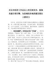 在全市经济工作会议上的交流发言:做强党建引领引擎,为县域经济高质量发展注入新活力.docx