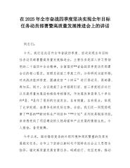 在2025年全市奋战四季度坚决实现全年目标任务动员部署暨高质量发展推进会上的讲话