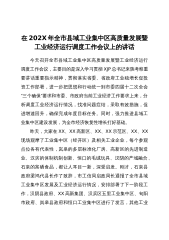在202X年全市县域工业集中区高质量发展暨工业经济运行调度工作会议上的讲话范文