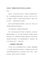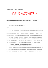 仅供学习禁止外传公众号:公文写作Pro全县经济运行分析会暨秋季“双招双引百日行动”动员会议上的讲话同志们:今天,我们召开全县经济运行分析会,主要任务是全面贯彻落实市委常委(扩大)会议、市政府常务(扩大)会议、市春季“双招双引百日行动”总结暨秋季“双招双引百日行动”启动工作会议和全市脱贫攻坚普查发现问题整改暨省脱贫攻坚普查抽查工作部署会议精神。今天的会议也是找差距、抓落实,对县委×届×次全会工作任务的再部署、再安排,冲刺四季度,确保完成全年各项任务目标。刚才,发改、财政、工信、统计、招商等五个部门的主要负责同志汇报了分管领域、分管战线的工作完成情况、存在问题和下步安排;×镇分别就招商引资和财政收...