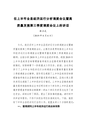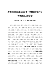 在全县2019年一季度经济形势分析会上的讲话(根据录音整理)同志们,今天,县政府召开2019年一季度经济形势分析会,主要任务是,全面分析一季度经济运行情况,研究解决面临的困难和问题,动员和督促全县上下认清形势、提振信心,瞄准目标、精准发力,确保实现“开门红”。刚才,统计、经贸、陕钢汉中公司等部门单位分别作了大会发言,刘县长对全县工业、商贸重点任务进行了安排部署,我完全同意。下面,我再讲几方面意见:一、提高思想认识,切实增强工作责任感和紧迫感今年一季度,我县经济下行压力较大,指标增速较去年明显回落,距离市委、市政府提出的工作要求和年初预期目标存在较大差距。加之,当前距一季度收官仅有一个月时间,扭...