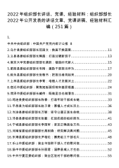 2022年组织部长讲话、党课、经验材料:组织部部长2022年公开发表的讲话文章、党课讲稿、经验材料汇编(251篇)