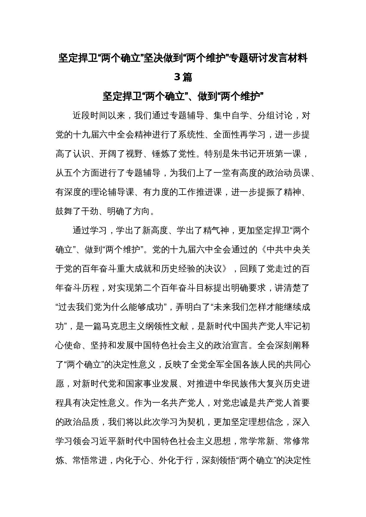 (3篇)坚定捍卫“两个确立”坚决做到“两个维护”专题研讨发言材料范文