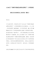 在XX区“党建引领基层治理攻坚硬仗”工作现场观摩会及任务推进会上的讲话(精品)同志们:今天,我们利用一天的时间,召开了这次全区“党建引领基层治理攻坚硬仗”工作现场观摩会及任务推进会。上午,大家一起实地观摩了XX镇XX村、区行政审批局、XX公司和XX镇XX社区四个不同类型的现场点,涵盖了村级规范化建设、政务服务热线“接诉即办”、新兴领域党建以及社区阵地建设等多个关键领域。刚才,会议通报了全区“党建引领基层治理攻坚硬仗”的整体进展情况,XX镇、XX镇、区民政局区交通运输局四个单位也结合自身实际,分享了宝贵的经验和做法。总的来看,观摩的典型有特色、有亮点,交流的单位有思考、有深度,达到了相互学习、相互启发、共同提高的目的。当前,时值2025年岁末,我们正处在全年工作的冲刺收官阶段,打好“党建引领基...