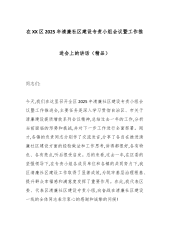 在XX区2025年清廉社区建设专责小组会议暨工作推进会上的讲话(精品)同志们:今天,我们在这里召开全区2025年清廉社区建设专责小组会议暨工作推进会,主要任务是深入学习贯彻自治区、市关于清廉建设提质增效系列会议精神,总结过去一年的工作,分析当前面临的形势和挑战,并对下一步工作进行全面部署。刚才,各镇的负责同志分别作了交流发言,分享了各自在推进清廉社区建设方面的经验做法和工作思考,讲得都很好,各有特色、各有亮点,听后很受启发。总的来看,过去一年,在区委的坚强领导下,在专责小组各成员单位和各镇的共同努力下,我区清廉社区建设工作取得了显著成效,为筑牢基层治理根基、提升群众幸福感和满意度发挥了重要作用。在此,我代表区委、代表区清廉社区建设专责小组,向奋战在清廉社区建设一线的全体同志表示衷心的感谢和诚...