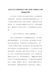 2024年关于全局贯彻信访工作新《条例》共建信访工作新格局的讲话稿新《信访工作条例》是在新的历史起点上纵深推进信访制度改革、实现信访工作高质量发展的纲领性文件,对于坚持和加强党对信访工作的全面领导、理顺信访工作体制机制、进一步规范和加强新时代信访工作,都具有重要意义。我通过对《条例》的学习,有些感悟和各位共同交流。一、深刻认识制定出台《条例》的重要意义信访工作是党的群众工作的重要组成部分,是了解社情民意的重要窗口,对于各位来说,我们既是新《条例》的执行者和落实者,更是抓信访工作的具体负责人。新《条例》的颁布和实施,是系统总结了我们党长期以来领导和开展信访工作经验特别是党的十八大以来信访工作制度...