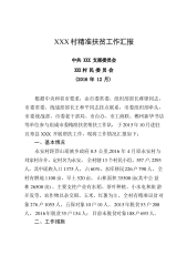 XXX村精准扶贫工作汇报根据中央和省市要求,由市委常委、组织部部长蒋锋同志,市委常委、统战部部长王和平同志挂点联系,市委组织部牵头,市委统战部、市委老干部局、市台办、市工商联、郴州新华书店等单位参与组成市委精准扶贫帮扶工作队,于2015年10月进驻宜章县XXX开展帮扶工作,现将工作情况汇报如下:一、基本情况永安村距莽山瑶族乡政府0.5公里,2016年4月原永安村与刘家村合并,定村名为永安,全村辖13个村民小组,557户,2293人,其中瑶族人口1375人,占60%,水库移民226户790人。全村有耕地1100亩,旱土520亩,山林面积35500亩(其中公益林26500亩)。主要支柱产业有水稻、...