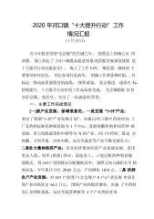 2020年河口镇“十大提升行动”工作情况汇报(1月13日)在今年脱贫攻坚“交总账”的关键之年,按照县上的精心安排部署,镇上制定了《河口镇提高脱贫质量巩固脱贫成果接续推进十大提升行动实施意见》,成立了工作专班,镇党委、镇政府主要领导担任组长,列出各项任务清单,明确工作要求和时限,对标这一推动高质量脱贫的高线,统筹谋划,重点推进、逐项对标,持续提升,十大提升行动各项工作高标准完成,为全镇精准扶贫交好总账、收好官,交出了一份满意的答卷。一、主要工作完成情况制定了我镇“1+N”产业发展计划”,实施以河口镇中药材初加工厂及药材标准化种植基地为1个中心,发展林麝养殖和饲草种植基地,着力发展蔬菜和中蜂等为N...