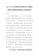 在2025年工会系统深入贯彻中央八项规定精神学习教育动员部署会上的讲话范文