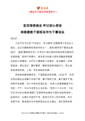 (精品范文每日持续更新中)坚定理想信念牢记初心使命持续激励干部担当作为干事创业同志们:习近平总书记在“不忘初心、牢记使命”主题教育工作会议上指出,这次主题教育的具体目标之一,就是“要实现干事创业敢担当”,强调“要教育引导广大党员干部以强烈的政治责任感和历史使命感,保持只争朝夕、奋发有为的奋斗姿态和越是艰险越向前的斗争精神,以钉钉子精神抓工作落实,坚决摒弃一切明哲保身、得过且过、敷衍塞责、懒政怠政等消极行为,努力创造经得起实践、人民、历史检验的实绩。”党的政治路线确定后,干部就是决定因素。1938年,毛泽东同志提出必须善于识别干部,善于使用干部,善于爱护干部。改革开放初期,邓小平同志告诫全党,“...