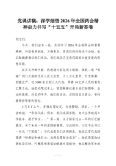 党课讲稿:深学细悟2026年全国两会精神奋力书写“十五五”开局新答卷