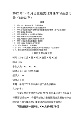 2022年1-12月份主题党日党课学习会议记录(补台账资料用)