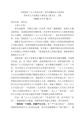 在武进区“云上代表之家”首次直播仪式上的讲话常州市人大常委会人事代表工委主任王莉(2022年3月10日)各位代表、同志们:大家上午好!阳光布德泽,万物生光辉!在全国“两会”捷报频传,各级人大锚定新坐标、奋进新征程的关键时刻,非常荣幸受常州市人大委托和武进区人大邀请,走进武进区“云上人大代表之家”,见证代表讲堂首讲开讲。在此,向武进区“云上人大代表之家”的成功运行表示热烈祝贺!XJP总书记在中央人大工作会议上强调,各级人大常委会要加强代表工作能力建设,支持和保障代表更好依法履职,使发挥各级人大代表作用成为人民当家作主的重要体现。3月8日,栗战书委员长在所作的全国人大常委会工作报告中强调,“要加强...