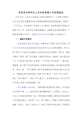 村党总支部书记上半年抓党建工作述职报告X年以来,X村在X街道党工委的正确领导下,认真学习贯彻习近平总书记系列重要讲话和治国理政新理念新思想新战略,坚持以“不忘初心。牢记使命”和党的十九大精神,全面贯彻落实党建各方面的工作,进一步夯实总支部党建基础,加强服务型党组织建设,不断提高党建工作水平。现将X村X年上半年党建工作汇报如下:一、履职尽责情况一是贯彻落实党的方针政策。我带领村“两委”班子成员深入学习习近平总书记在庆祝改革开放40周年大会上的讲话精神、学习全国“两会”及省市会议精神以及新区的各项文件精神。常态化、制度化推进“两学一做”学习教育,借助农民夜校、微党校、集中组织学习了“中国共产党支部...