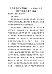 在县委党校学习党的二十大精神培训班结业仪式上的发言发改各位领导、老师、各位同学:大家下午好!非常荣幸能够作为学员代表在这里发言。首先,请允许我代表本期学员感谢县委组织部、县委党校的各位领导和老师对这次培训的精心筹划和细致安排。在全面贯彻党的二十大精神的开局之年,在这个充满希望的春天,欣逢两会召开之际,我们有幸参加了本期学习贯彻党的二十大精神专题培训班,通过五天的集中培训、专题辅导、专家解读和分组研讨交流,我感觉最大的收获是锤炼了党性、凝聚了共识,特别是县委书记X在开班式上所作的专题辅导报告,从政治上、思想上、行动上,深刻阐述了“两个确立”的决定性意义,提出了加快打造中国式现代化场景X篇章的战略...