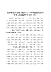 应急管理局党组书记学习2025年全国两会精神中心组研讨发言材料(1)2025年全国两会的胜利召开,为应急管理工作指明了新方向,提供了新遵循。两会期间,关于安全生产、防灾减灾等应急管理领域的讨论和部署,让我们深刻认识到应急管理工作的重要性和紧迫性。作为市应急局党组书记,通过深入学习两会精神,结合我市应急管理工作实际,我有以下几点思考和体会。一、紧扣“十四五”收官,部署安全生产与防灾减灾,推动目标落地衔接“十五五”“十四五”期间,我市应急管理工作在安全生产和防灾减灾等方面取得了显著成效,但也面临着一些挑战。全国两会对安全生产和防灾减灾提出了更高的要求,我们要以此为契机,全面梳理“十四五”期间的工作...