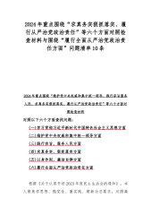 2024年重点围绕“求真务实狠抓落实、履行从严治党政治责任”等六个方面对照检查材料与围绕“履行全面从严治党政治责任方面”问题清单10条