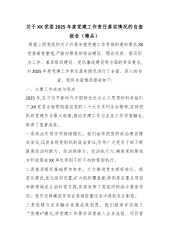 关于XX党委2025年度党建工作责任落实情况的自查报告(精品)