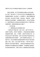 20230109:党委书记2022年以案促改专题民主生活会个人剖析材料