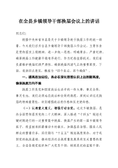 在2026年乡镇党委、党代表换届工作暨差额人员集中谈话会上的讲话同志们:今天,我们在此召开*镇党委、党代表换届工作暨差额人员集中谈话会。这次会议的主要任务是,深入贯彻上级关于本次换届工作的部署要求,进一步统一思想、严明纪律、明确任务,确保换届工作有力、有序、有效推进。我代表市委,向参与本次换届工作的全体同志,致以诚挚的问候。下面,我讲几点意见。一、提高政治站位,深刻认识换届工作的重大意义2026年是“十五五”规划的开局之年,也是推进乡村全面振兴的关键之年。根据统一部署,今年省、市、县、乡四级领导班子将陆续进行换届。这次党委换届和党代表换届,不是一次简单的人事更替,而是关系到*镇未来五年发展蓝图如何擘画、发展路径如何选择的重大政治任务。选出一个什么样的班子、一批什么样的代表,直接决定了*镇能否...