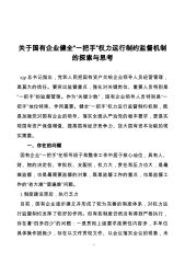 关于国有企业健全“一把手”权力运行制约监督机制的探索与思考