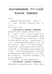 党纪学习教育党课讲稿:严守“六大纪律” 争当讲纪律、守规矩的表率.docx